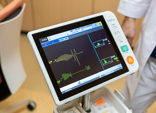 血管年齢測定:動脈硬化の程度(血管の硬さ・詰まり)を数値化します。